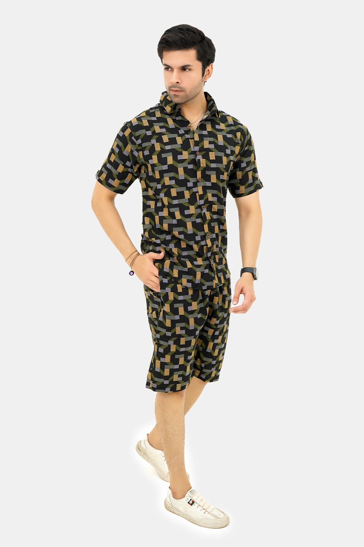 Islander Dune Echo Print Shirt & Shorts Set For Men(A018)