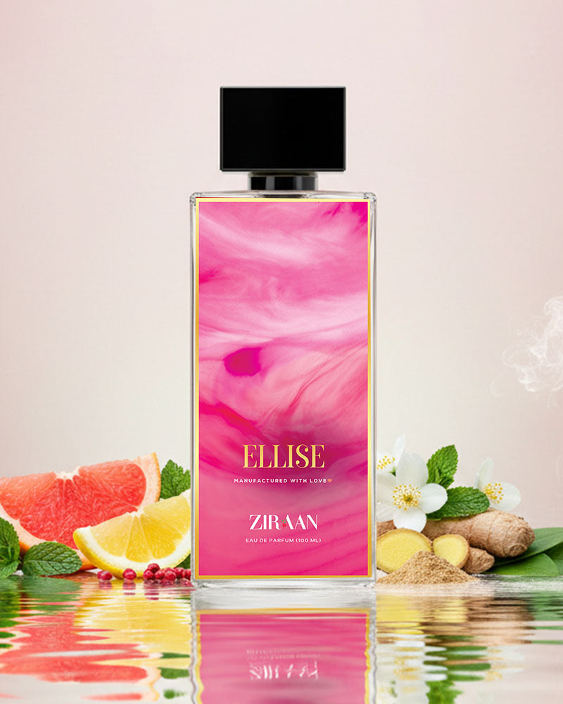 The top notes of Ellise burst with a refreshing combination of grapefruit, lemon, mint, and a hint of pink pepper, instantly awakening the senses. These invigorating citrus and spicy accords create a vibrant and energetic opening. As the fragrance evolves, the heart notes of ginger, nutmeg, jasmine, and Iso E Super add a touch of warmth and sensuality to the composition.