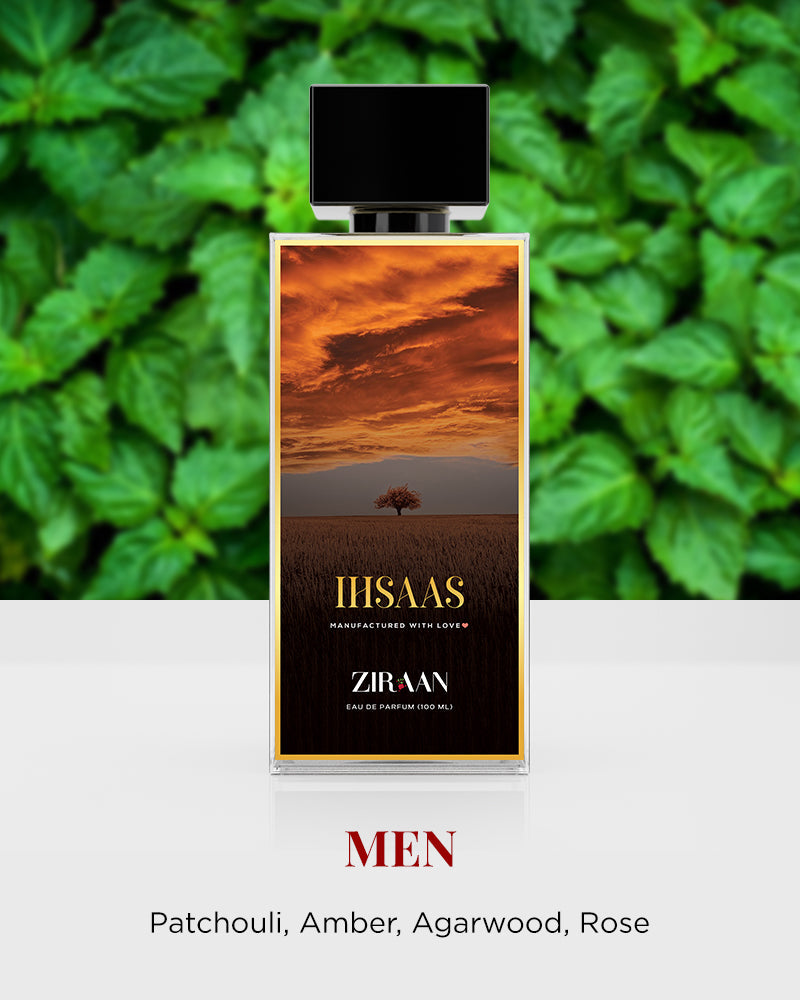 Ihsaas is a captivating and warm fragrance for men. This Amber Woody scent opens with refreshing top notes of Bergamot, Lemon, and Lavender, which are immediately followed by a heart of rich spices such as Cinnamon, Nutmeg, and Cardamom. The base notes of Ihsaas reveal a deep and alluring combination of Amber, Patchouli, and Cedarwood, creating a long-lasting and memorable scent. Whether you're dressing up for a special occasion or just want to feel confident and attractive throughout the day, Ihsaas is the perfect fragrance to complete your look.